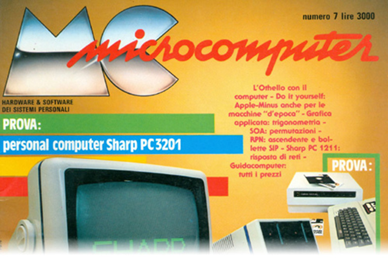 La macchina di copertina del numero 7 di MC è giapponese. Questo è un dettaglio non del tutto secondario a quei tempi. All'epoca, infatti, quasi tutti i computer provenivano dagli Stati Uniti e quelli del Sol Levante erano davvero pochi. Uno di questi, fresco di commercializzazione, era lo Sharp PC-3201. Come tanti altri microcomputer dell'epoca aveva la tastiera incorporata nell'unità centrale.