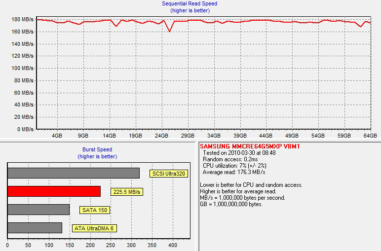 Questo vuol dire, semplicemente, che c'è un limite fisico nell'architettura interna che, nonostante la sua natura esclusivamente elettronica, offre una velocità di trasferimento addirittura peggiore di quella del disco stesso, dove sono in gioco anche parti meccaniche. Da non crederci... :-(